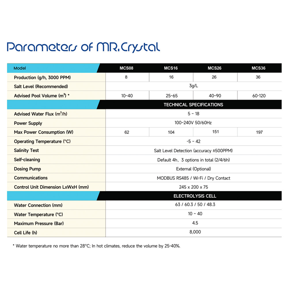 A Mr. Crystal sóbontó ideális választás azoknak, akik modern, hatékony és hosszú élettartamú megoldást keresnek a medencevíz tisztán tartására.